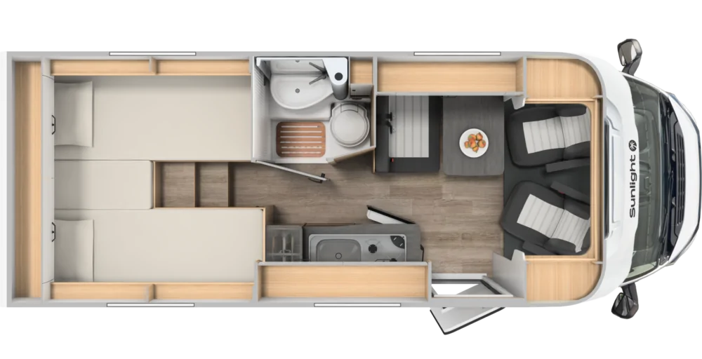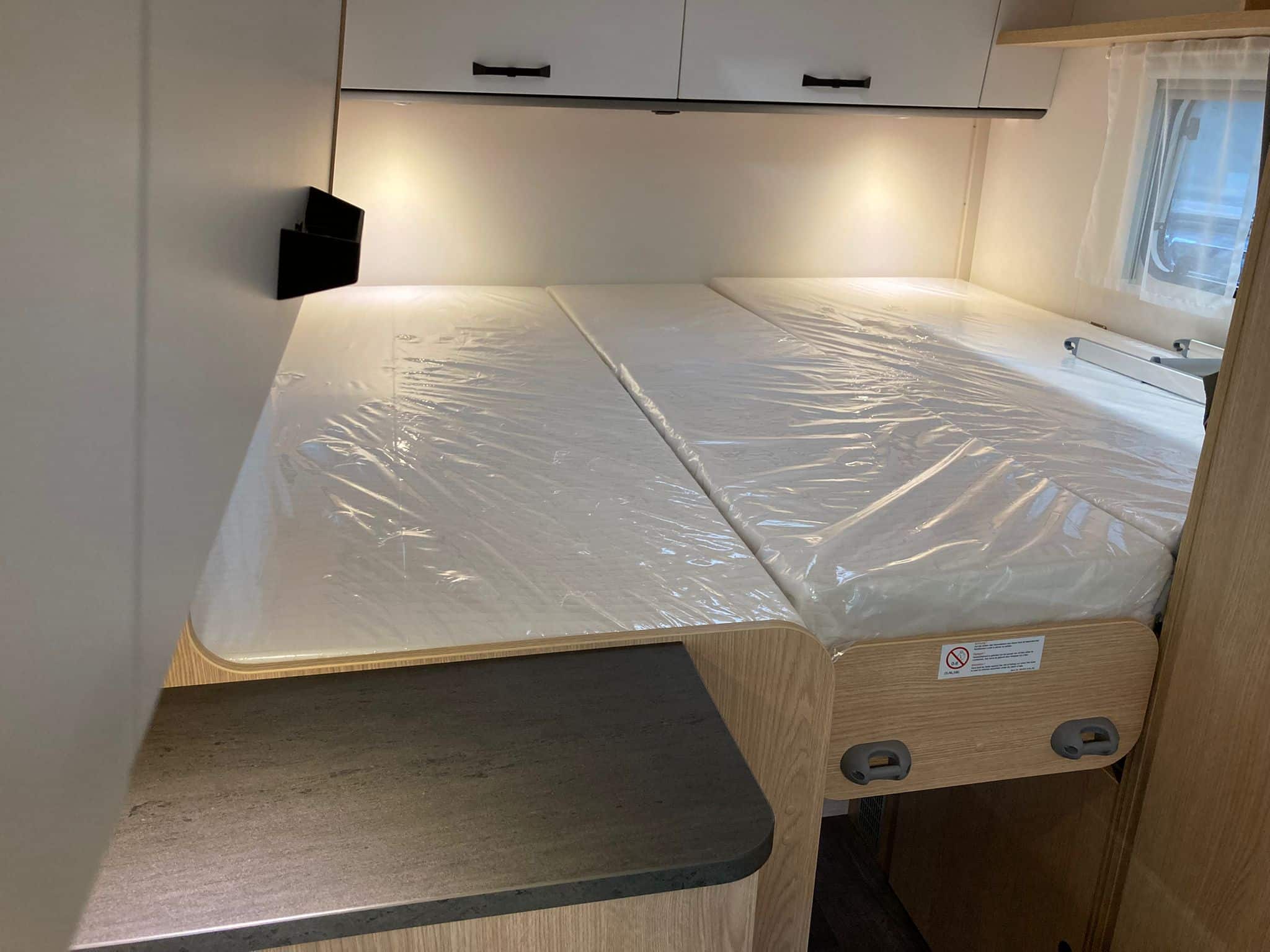 Neuwertiges Teilintegriertes Wohnmobil 2025 in der S-Klasse – mit bequemen Längsbetten einzel im Heck und tollem Ambiente.